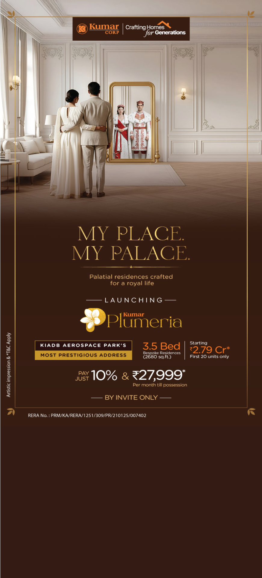 Nestled beside 3,000 acres of KIADB Hardware and Aerospace Technology Park, 'Kumar Plumeria' offers unmatched connectivity to major corporations, educational institutes, healthcare facilities, sports centre,malls and shopping plazas, and the Bengaluru International Airport without compromising the tranquil lifestyle you deserve.